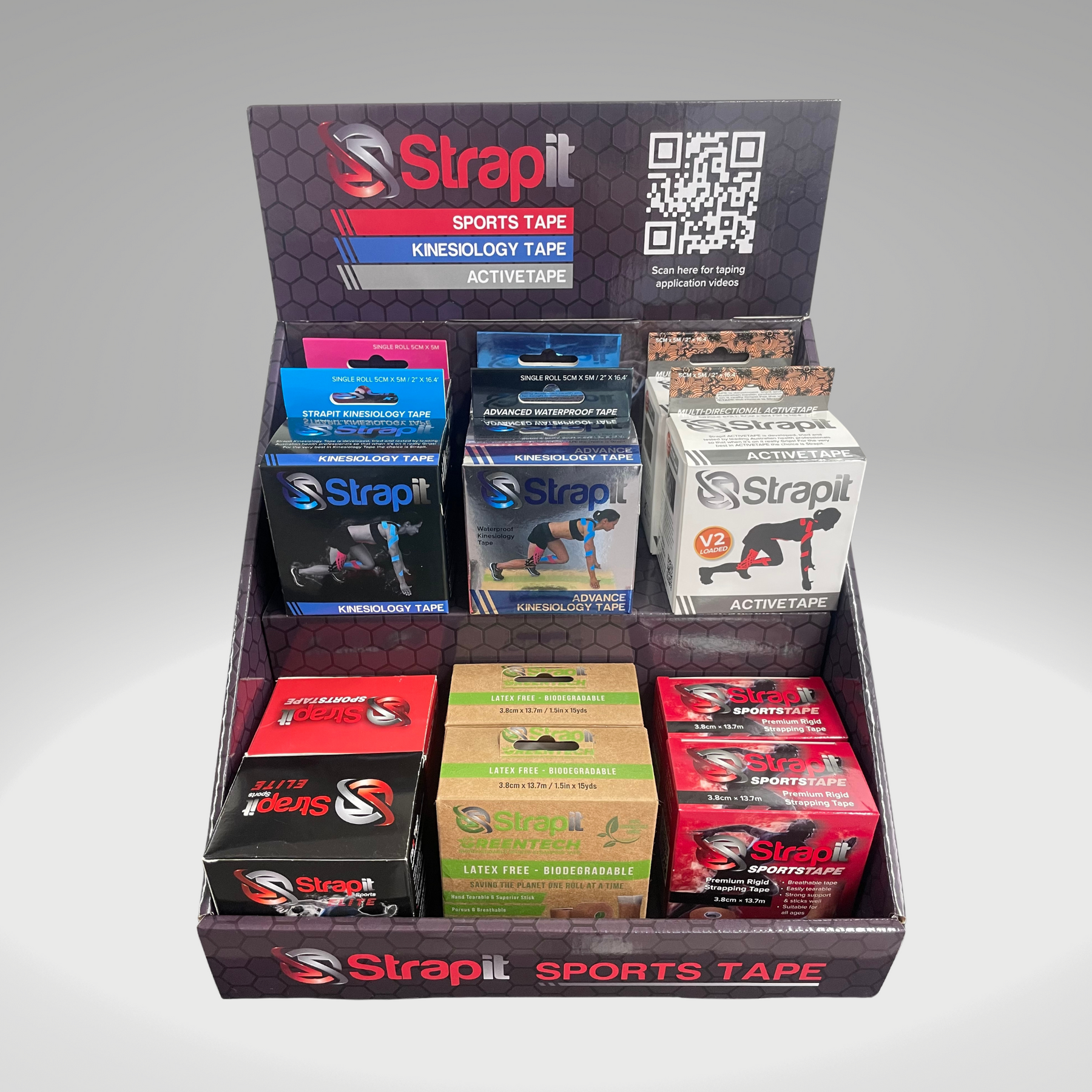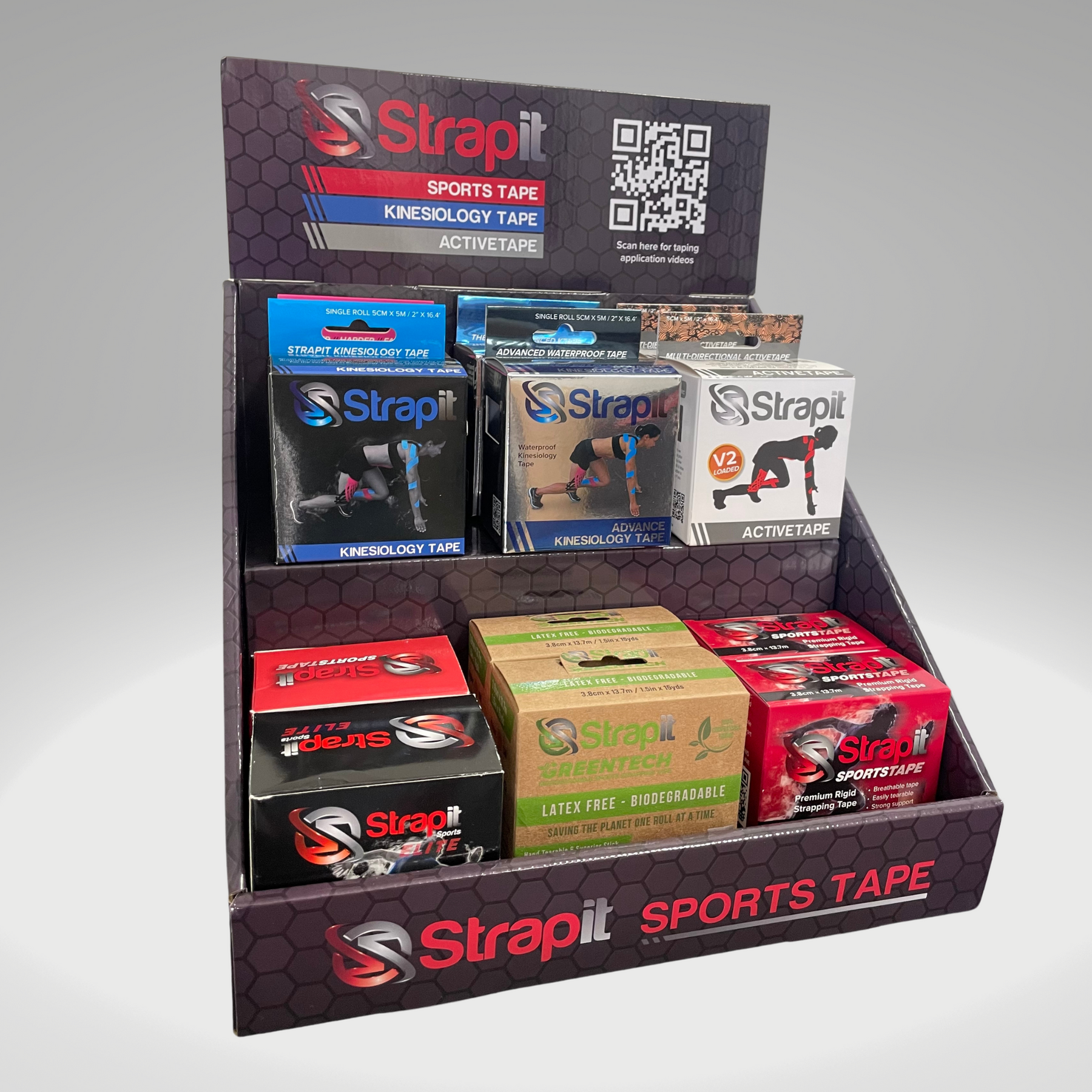 A great visual tool for your customers and a clever QR code at the top of the stand that provides links to video demonstrations on how to tape.