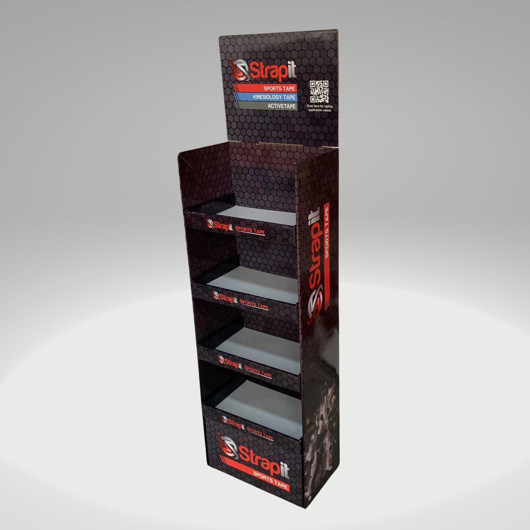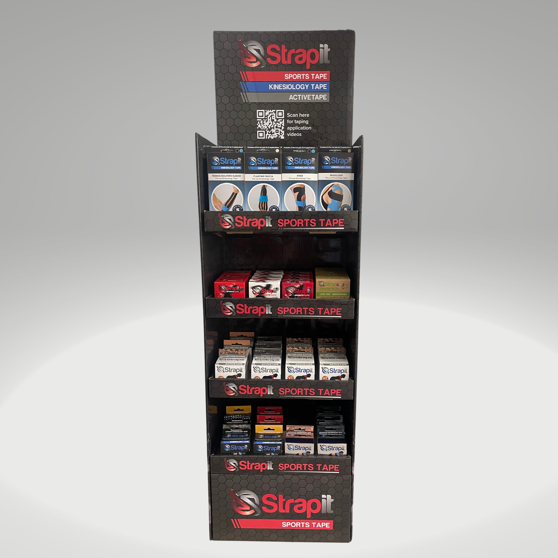 A great visual tool for your customers and a clever QR code at the top of the stand that provides links to video demonstrations on how to tape.